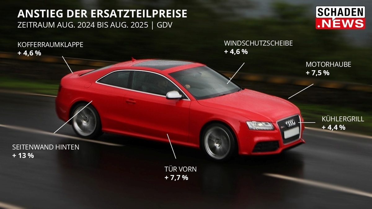sieben Prozent mehr als im Vorjahr“, betont der GDV-Hauptgeschäftsführer. Neben den teurer werdenden Ersatzteilen treiben laut Gesamtverband auch die steigenden Stundenverrechnungssätze der Kfz-Werkstätten die Reparaturkosten weiter nach oben. [Laut einer GDV-eigenen Auswertung lagen diese 2024 erstmals über der Grenze von 200 Euro, blickt man jedoch auf die durchschnittlichen DEKRA Reparatur Stundensätze, fallen diese deutlich niedriger aus, wie schaden.news in dieser Woche berichtet.](https://schaden.news/de/article/link/44736/gdv-durchschnittliche-svs-ueber-200-euro-wie-kommt-wert-zustande) Diese dürften demnach deutlich weniger ins Gewicht fallen, als die Ersatzteilpreise. ## Kehren Versicherer nach Milliardenverlusten in Gewinnzone zurück? Die seit Jahren steigenden Reparaturkosten wirken sich auch auf die wirtschaftliche Lage der Kfz-Versicherer aus – wie der GDV auch wiederholt betont. Tatsächlich verzeichnete die Branche in den vergangenen zwei Jahren versicherungstechnische Verluste von nahezu fünf Milliarden Euro. 2024 und 2025 haben viele Kfz-Versicherer ihre Beiträge deshalb deutlich erhöht. Fakt ist jedoch auch, dass diese Verluste nicht ausschließlich durch die steigenden Reparaturkosten sondern durch eine Vielzahl von Faktoren verursacht wurden. So standen den zuvor stetig sinkenden Versicherungsprämien beispielsweise eine steigende Inflationsrate sowie mehr Schäden durch Starkwetterereignisse gegenüber. „Für das Jahr 2025 rechnet der GDV dennoch mit einer Rückkehr der Sparte in die versicherungstechnische Gewinnzone, geht aber von einem weiterhin hohen Preisdruck aus“, heißt es in der Medieninformation. ## Hintergrund der GDV-Untersuchung Seit vielen Jahren analysiert der GDV die Entwicklung der Ersatzteilpreise. Dafür erheben Ingenieur/-innen und Statistiker/-innen des GDV die Kosten in der Schadenkalkulations-Datenbank von Audatex. Die Untersuchung umfasst 38 Fahrzeugmodelle verschiedener Hersteller von Kleinwagen bis zu Modellen der oberen Mittelklasse und insgesamt 20 verschiedene Ersatzteile.