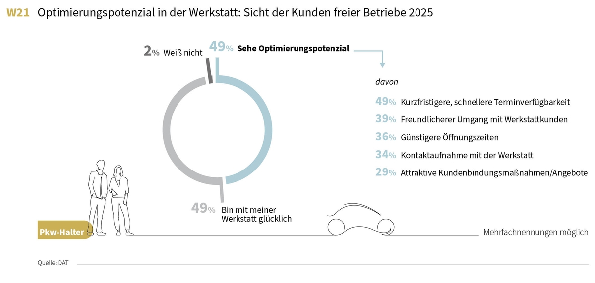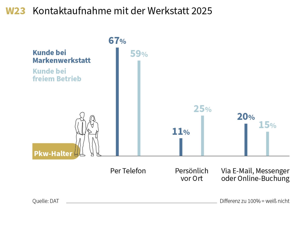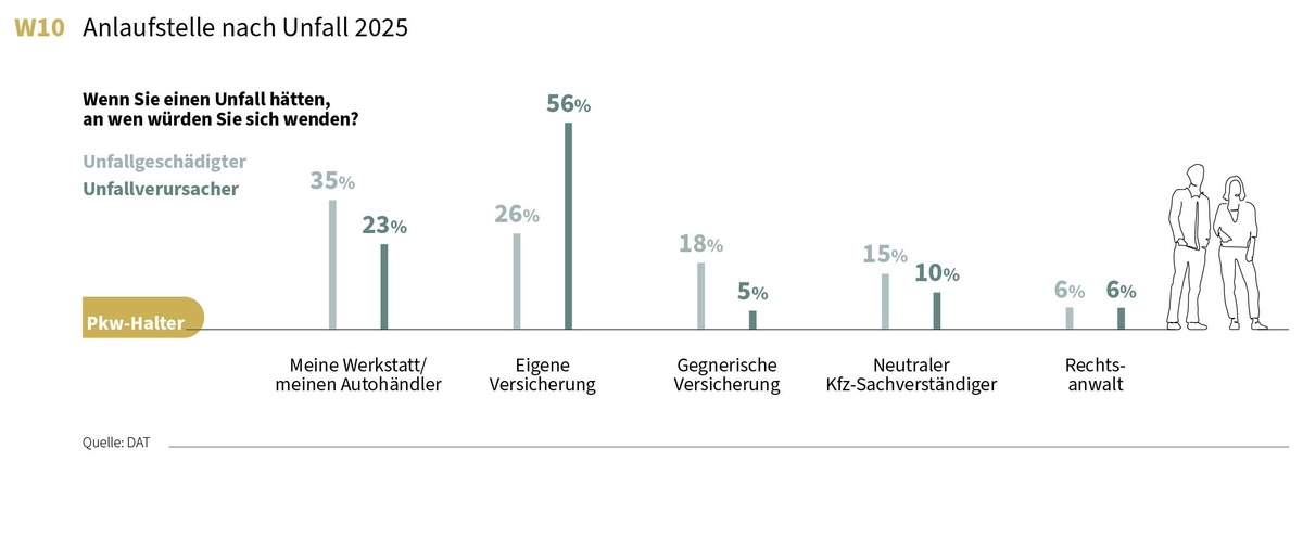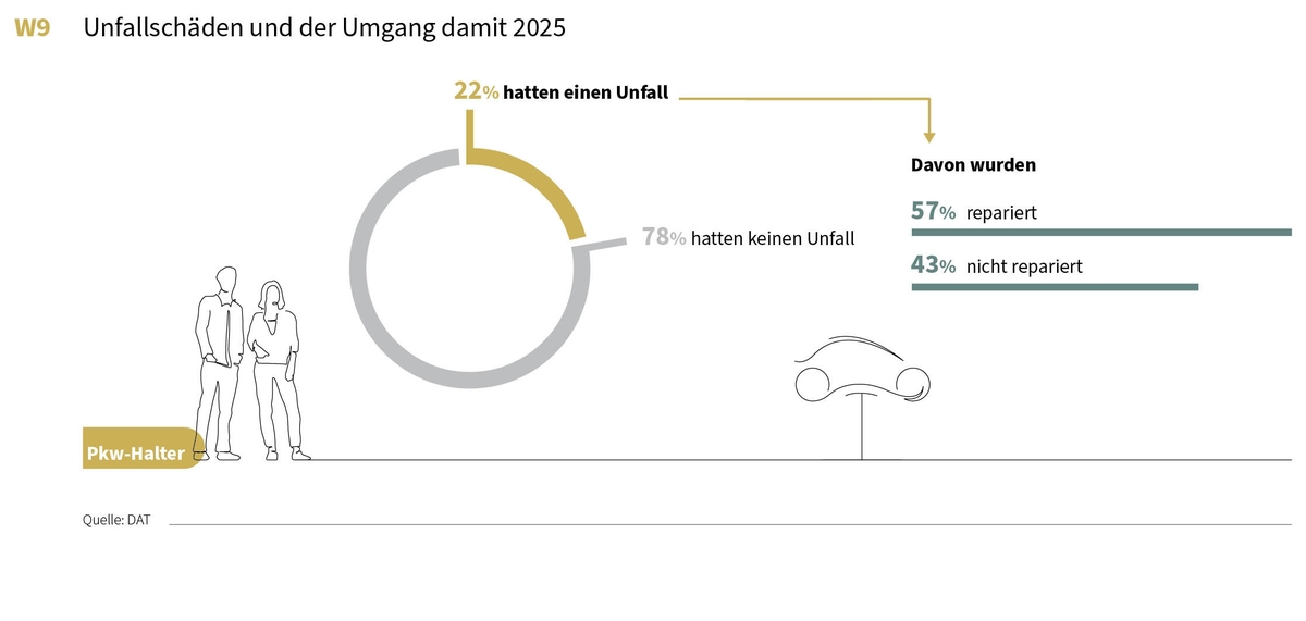 Am Dienstag, 27. Januar, wird in Berlin der DAT-Report 2026 vorgestellt. schaden.news hat in diesem Beitrag die wichtigsten Fakten aus den Kapiteln „Pkw-Halter als Werkstattkunde“ sowie „Antriebsarten“ zusammengefasst. ## Werkstattlandschaft: stabile Strukturen trotz leichter Rückgänge So zeigt sich die Werkstattlandschaft in Deutschland weiterhin robust, auch wenn sich die Zahl der Betriebe leicht reduziert hat. Im Jahr 2025 waren unter dem Dach des ZDK 13.950 Markenbetriebe organisiert, rund 100 weniger als im Vorjahr, sowie 21.830 freie Werkstätten, ein Rückgang um 150 Standorte. In der Verteilung der Arbeiten konnten die Markenbetriebe zulegen: 45 Prozent aller Werkstattaufträge entfielen auf sie, nach 43 Prozent im Jahr 2024. Freie Werkstätten kamen auf 35 Prozent und verloren damit leicht an Anteil. Dennoch bleibt die Bindung der Autofahrerinnen und Autofahrer an den Stamm-Betrieb ausgesprochen hoch. Neun von zehn Pkw-Haltern geben an, Wartungs- und Reparaturarbeiten stets in derselben Werkstatt durchführen zu lassen. Der Anteil jener, die die Werkstatt wechseln, liegt hingegen lediglich bei zehn Prozent – das unterstreicht einmal mehr die große Bedeutung von Vertrauen und gewachsenen Kundenbeziehungen. ## Wartung und Reparatur: weniger Termine, höhere Rechnungen Gleichzeitig verändert sich die Auslastung der Betriebe. Die Wartungshäufigkeit ging 2025 leicht zurück und sank von 1,03 auf 0,97 Wartungen pro Pkw. Demgegenüber stehen deutlich steigende Kosten: Mit durchschnittlich 542 Euro erreichten die Wartungsausgaben einen neuen Höchstwert und liegen damit 27 Prozent über dem Niveau von 2019. Wartungen wurden dabei häufiger in Markenwerkstätten durchgeführt, während sich mit zunehmendem Fahrzeugalter eine stärkere Verlagerung zu freien Betrieben zeigte. Ein ähnliches Bild ergibt sich bei Reparaturen. Die Häufigkeit von Verschleißreparaturen sank auf ein Allzeittief von 0,35 Reparaturen pro Pkw, das Kostenniveau blieb jedoch stabil bei etwas über 600 Euro. Parallel dazu steigt der finanzielle Druck auf Fahrzeughalter. 58 Prozent berichten laut DAT von einer grundlegend veränderten Beziehung zur Werkstatt: Viele beschränken sich auf das Notwendigste, vergleichen Angebote intensiver oder greifen vermehrt auf DIY-Lösungen zurück. 59 Prozent wären zudem bereit, zur Kostensenkung funktionstüchtige Gebrauchtteile einbauen zu lassen. ## Unfallschaden: Werkstatt bleibt erste Adresse Diese Kostensensibilität zeigt sich auch im Falle eines Unfallschadens. 22 Prozent der befragten Pkw-Halter hatten 2025 einen Unfall, doch nur 57 Prozent ließen den Schaden tatsächlich reparieren. Die durchschnittlichen Reparaturkosten stiegen dabei deutlich auf 2.353 Euro – im Vorjahr lag der Wert bei 2.166 Euro. Für Geschädigte bleibt die Werkstatt dennoch der zentrale Anlaufpunkt: 35 Prozent suchten im Schadenfall zuerst ihren Betrieb auf. Unfallverursacher hingegen wenden sich überwiegend zunächst an ihre Versicherung, was die unterschiedlichen Prioritäten von Reparatur und Kostenabsicherung verdeutlicht. ## Digitalisierung: erwartet, aber nicht ausschlaggebend Im Zuge dieser Entwicklungen gewinnt die Digitalisierung an Bedeutung, ersetzt den persönlichen Kontakt jedoch nicht. Softwareprobleme treten insbesondere bei jüngeren Fahrzeugen zunehmend auf und werden häufig im Rahmen von Wartungsterminen behoben. Gleichzeitig können sich 62 Prozent der Befragten vorstellen, Unfallschäden per Smartphone zu dokumentieren und per App an die Versicherung zu senden. Dennoch bleibt der Wunsch nach persönlicher Betreuung dominant: Nur drei Prozent bevorzugen einen vollständig digitalen Schadenprozess, und auch bei der Online-Terminbuchung zeigt sich die Kundschaft weiterhin gespalten. ## E-Mobilität: Erfahrung schafft Offenheit Vor diesem Hintergrund lohnt der Blick auf die Antriebswende. Rund 30 Prozent der befragten Pkw-Halter sind bereits ein E-Fahrzeug gefahren. Diese Erfahrungen wirken sich spürbar auf die Einstellung aus: Fahrspaß und Alltagstauglichkeit werden von BEV-Erfahrenen deutlich positiver bewertet. Gleichzeitig bleiben Ladeinfrastruktur, Anschaffungspreis und die Batterie als Unsicherheitsfaktor zentrale Kritikpunkte. 74 Prozent der BEV-Nutzer bestätigen zudem den Einfluss der Witterung auf die Reichweite. Dennoch zeigt sich eine klare Trendwende: Mit 40 Prozent ist der Anteil derjenigen, die sich einen Umstieg vorstellen können, inzwischen höher als der Anteil der Skeptiker.