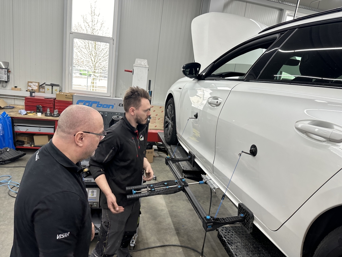 Wenn es nach dem Familienunternehmen Strasser+Bogner geht, bleibt ein beschädigtes Karosserieteil möglichst am Fahrzeug. Statt Bauteile auszutauschen, setzt der Pforzheimer K&L-Betrieb zunehmend auf I statt E. Eine zentrale Rolle spielt dabei das CBR-System von Carbon, mit dem sich Schäden an der Karosserieaußenhaut präzise und materialschonend instandsetzen lassen. ## Technik als strategische Entscheidung Das System basiert auf leichten, zugleich hochbelastbaren Carbon- und carbonfaserverstärkten Komponenten mit Wabenstruktur. Die ergonomischen Zugwerkzeuge ermöglichen laut Hersteller kontrollierte Reparaturen direkt am Blech, häufig ohne Demontage oder Teileersatz. Für Strasser+Bogner war das kein reines Werkzeug-Upgrade, sondern eine strategische Entscheidung: mehr Reparaturen, weniger Austausch, effizientere Abläufe. ## Messbare Effekte im Alltag Seit rund eineinhalb Jahren ist das CBR-System fest in die Prozesse integriert. Die Auswirkungen sind deutlich spürbar. „Unsere Instandsetzungsquote ist dadurch auf etwa 50 Prozent gestiegen“, sagt Karosseriebaumeister Pascal Bogner. Gemeinsam mit drei Fachkräften und zwei Auszubildenden arbeitet er täglich damit. Schäden, die früher neue Teile erfordert hätten, lassen sich heute oft direkt instandsetzen – das spart Zeit, Material und nicht zuletzt Kosten. ## Impulse von außen Der Impuls für diesen Schritt kam vor rund zwei Jahren. Auf der Automechanika 2024 lernte das Team um Familie Bogner die Technik näher kennen und tauschte sich mit Carbon-Ansprechpartner Siegbert Müller aus. „Wir waren schnell überzeugt, weil die Möglichkeiten der Außenhautinstandsetzung deutlich breiter sind als bei klassischen Methoden“, erinnert sich Jaqueline Bogner. Zwei Inhouse-Schulungen im eigenen Betrieb halfen dabei, das System zügig im Werkstattalltag zu verankern. ## Moderner Betrieb mit klarer Ausrichtung Die Voraussetzungen dafür waren gegeben: Der Betrieb mit 16 Mitarbeitenden arbeitet in einem Neubau an einer stark frequentierten Straße in Pforzheim. Neben vielen Privatkunden zählen Autohäuser und ein regionaler Versicherer zum Kundenstamm. Moderne Ausstattung und strukturierte Abläufe schaffen den Rahmen, neue Reparaturmethoden konsequent umzusetzen. ## Familiäre Kontinuität trotz Einschnitt Gleichzeitig ist Strasser+Bogner ein klassischer Familienbetrieb. Gegründet 1962 als Karosseriewerkstatt, später um eine Lackierabteilung erweitert, übernahmen 2010 Marco und Tatjana Bogner die Geschäftsführung. Nach dem plötzlichen Tod von Marco Bogner im Jahr 2022 führt Tatjana das Unternehmen gemeinsam mit Tochter Jaqueline und Sohn Pascal weiter – und treibt die technische Weiterentwicklung bewusst voran. ## Marketing-Unterstützung aus Eigeltingen Doch was nützt das beste Werkzeug, wenn der Autofahrer oder auch der Sachverständige gar nicht weiß, was I statt E genau ist und welche Vorteile diese Reparaturmethode mit sich bringt? Aus genau diesem Grund erhalten Betriebe wie Strasser+Bogner Marketingunterstützung aus Eigeltingen, um das CBR-System und seine vielfältigen Anwendungsmöglichkeiten bei der Fahrzeuginstandsetzung für den Endkunden bekannter zu machen. „Wir verstehen uns schließlich nicht nur als Werkstattlieferant, sondern als Anbieter einer ganzheitlichen Lösung“, erklärt Yannick Stern, Betriebsleiter der Carbon GmbH. Das Marketing-Paket von Carbon enthält daher eine personalisierte Landingpage im CI des K&L-Betriebs mit den wichtigsten Informationen zur Reparaturmethode Instandsetzen vor Erneuern und zum CBR-System. „Auf diese Weise unterstützen wir die Werkstätten dabei, das Konzept I statt E noch einmal endkundengerecht zu erklärten“, führt der Carbon Betriebsleiter weiter aus. ## Vom Spezialwerkzeug zum Standard Inzwischen ist das CBR-System fester Bestandteil der Werkstattausstattung. Die Auslastung ist so hoch, dass Strasser+Bogner nachgelegt hat: Seit einem halben Jahr steht ein zweites Gerät bereit. Für das Team ist die Außenhautinstandsetzung damit vom ergänzenden Verfahren zur ersten Wahl bei der Reparaturmethode geworden.
