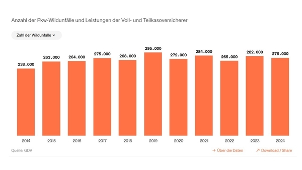 Wildunfälle: Schadenkosten in letzten zehn Jahren um 65 Prozent angestiegen