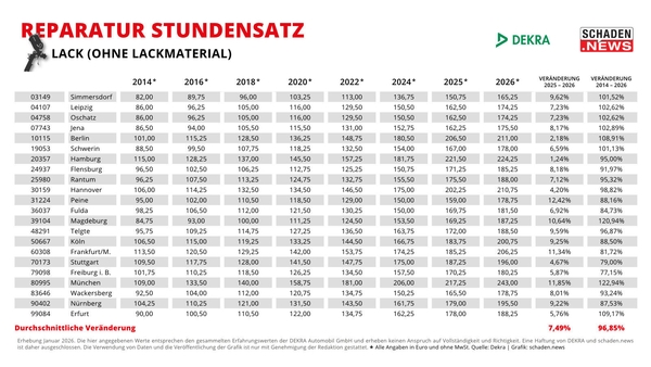 Der jährlich von DEKRA ermittelte Reparatur Stundensatz (DRS) hat sich seit 2014 über alle drei Gewerke um durchschnittlich 96 Prozent erhöht. Eine Reparaturstunde ist damit …